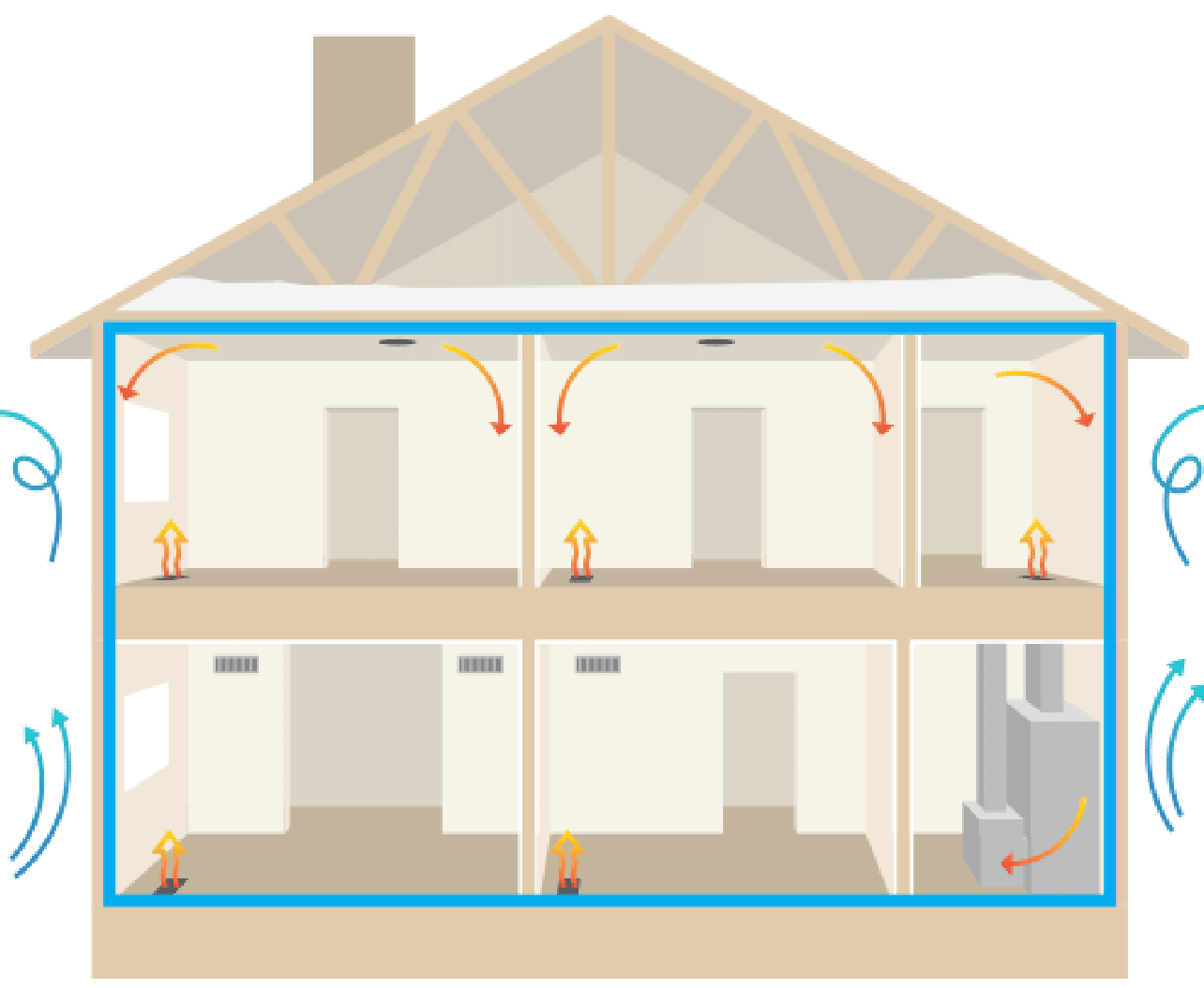 A massive amount of energy is wasted due to cracks, holes, and gaps in your house. Air leakage occurs when outside air enters and conditioned air leaves your house uncontrollably through cracks and openings.